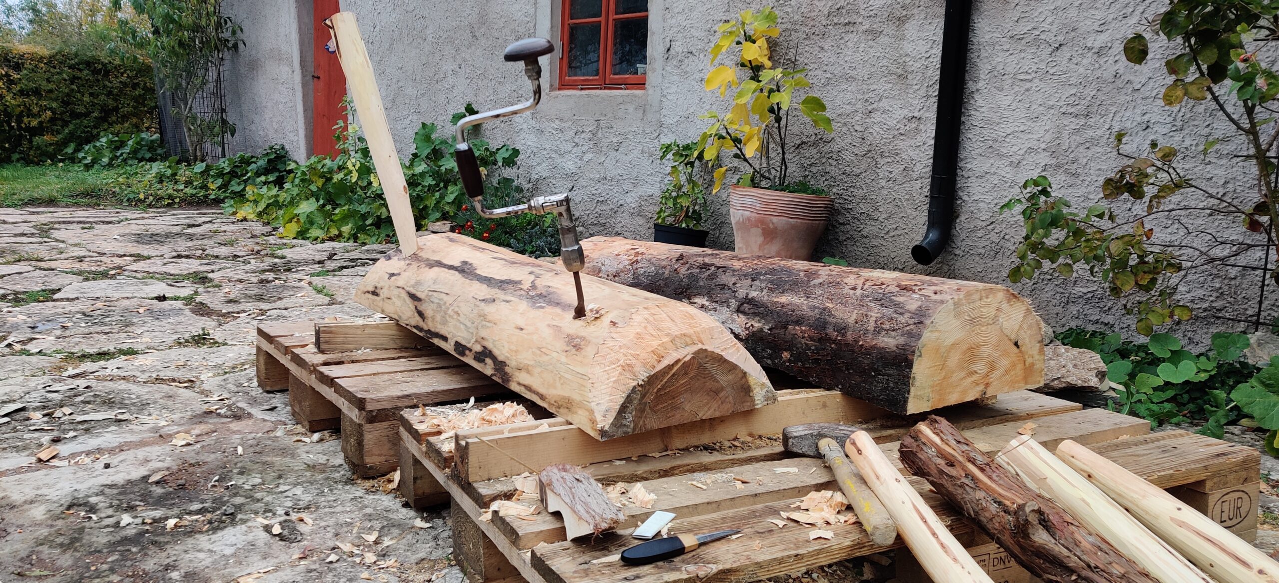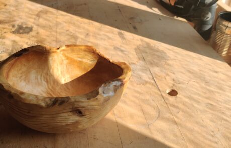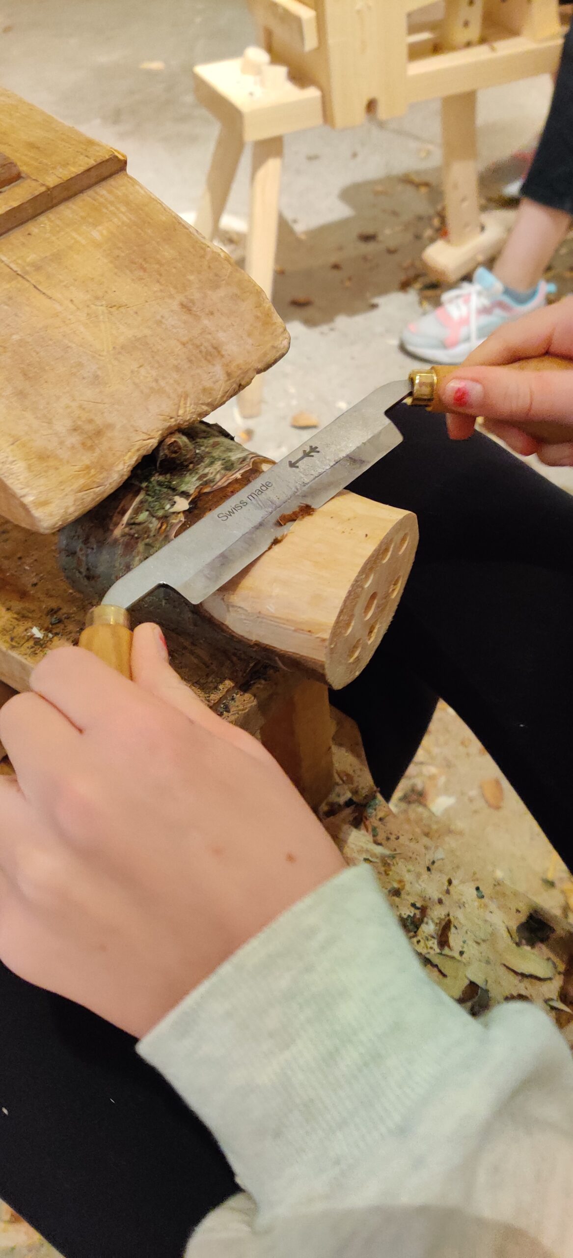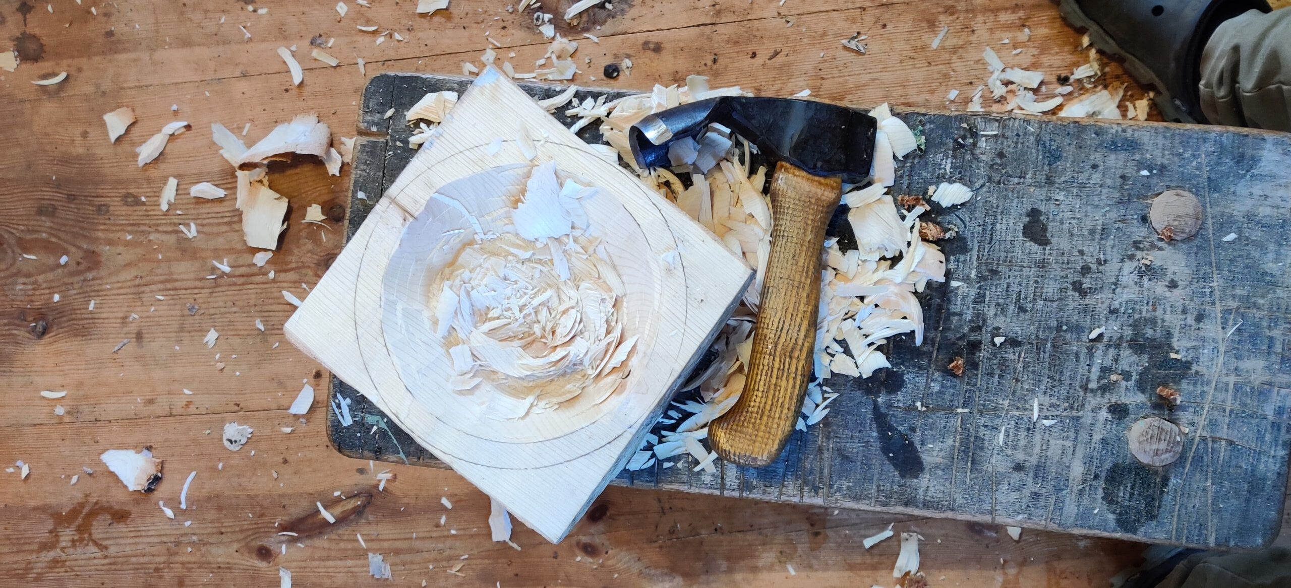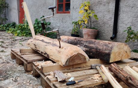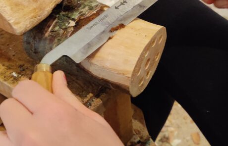 Under arbetets gång byggs förståelse för hur eggverktyg fungerar. Vi lär oss om träets egenskaper och utforskar traditionella sammanfogningstekniker som användning av kilar i kombination med torrt och färskt virke.