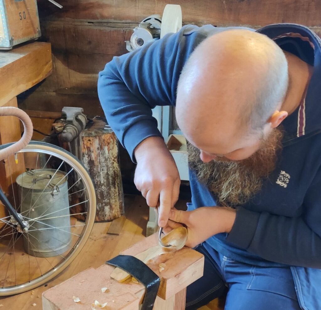 Kursen har tillgång till två verkstäder. Dels Snickarboa, ett timrat härbre på Edelvik, och dels kursledarens verkstad som ligger några km från Edelvik. Beroende på projekt och tid på året förflyttar vi oss mellan dem. Du behöver kunna transportera dig några km utanför Burträsk, själv eller tillsammans med en kurskamrat.